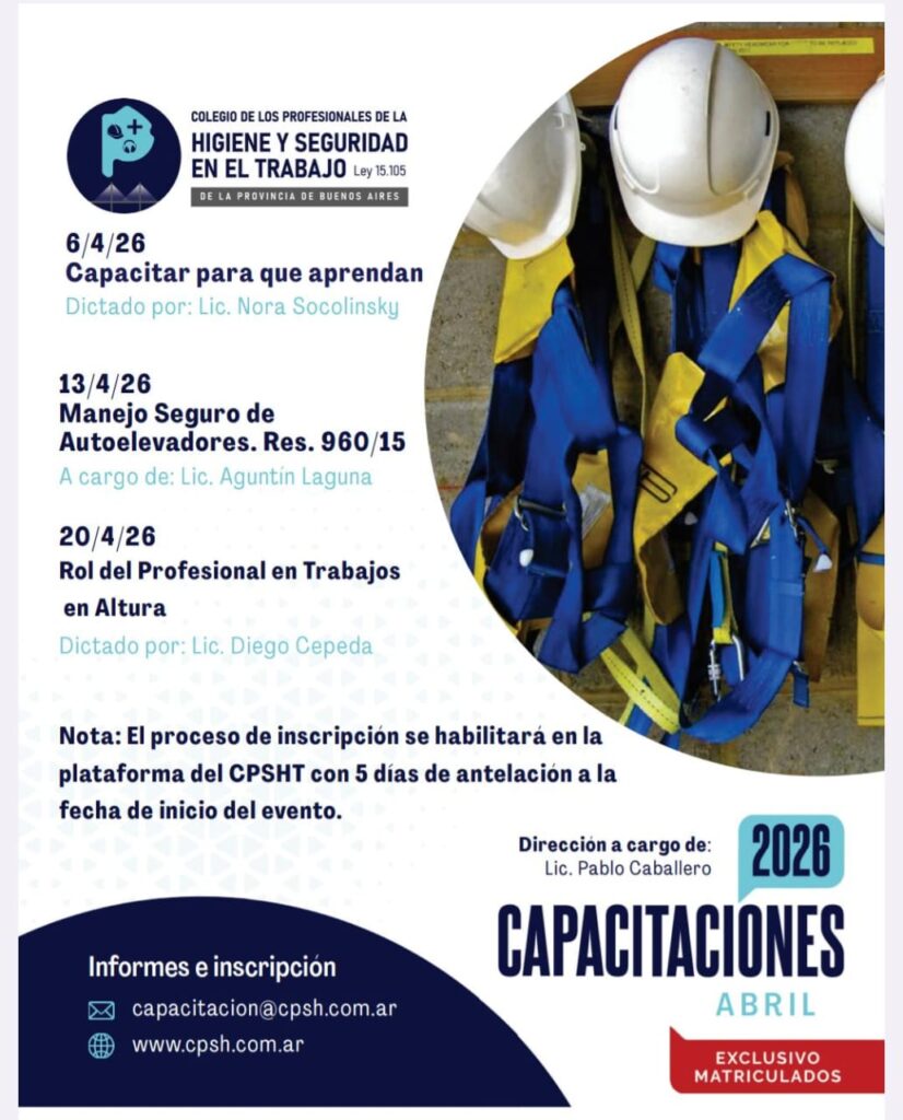 El Colegio de los Profesionales de la Higiene y Seguridad… Leer más: Capacitaciones Abril 2026 – CPSH PBA - Un reconocimiento histórico: el presidente del CPSH Bs. As. recibió la medalla de oro de los Premios PREVER