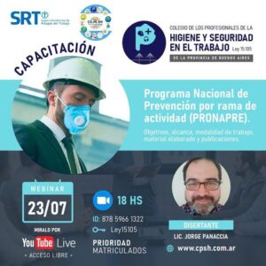 El próximo viernes 26 en forma conjunta con la SRT realizamos la capacitación libre y gratuita via zoom o you […]