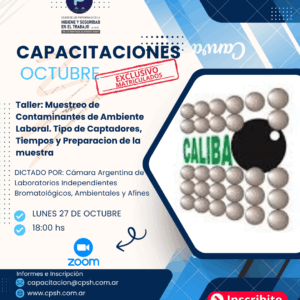 Tema: Muestreo de Contaminantes de Ambiente Laboral. Tipo de Captadores. Tiempos y Preparación de la muestra Disertante: CALIBA Lunes 27 […]
